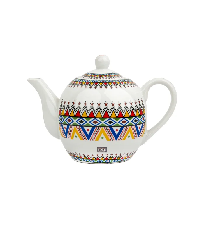 قدم الشاي بجو تراثي صحون بيالات نقشة غضار أزرق