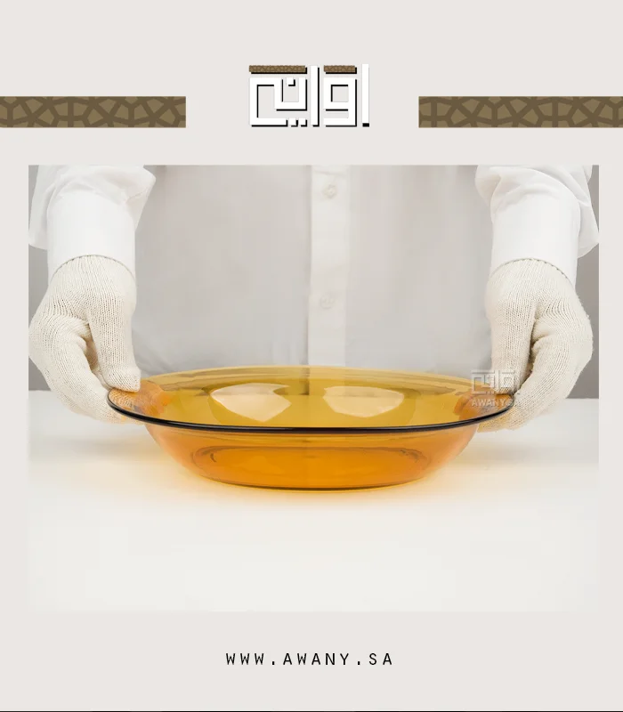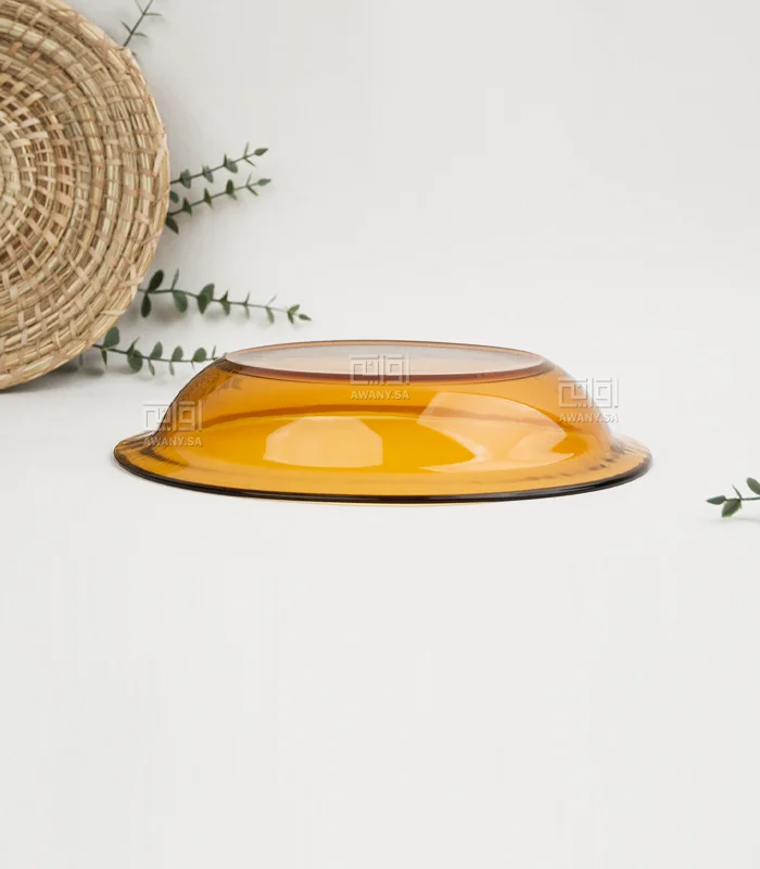 صحن عسلي أو طبق تقديم السفرة، خامة مصنوعة من أفضل أنواع الزجاج المقوى جودة ممتازة، تصميم مدور كلاسيك، بنمط سادة، قطر الصحن27 سم، افضل خيار على مائدة الغداء.