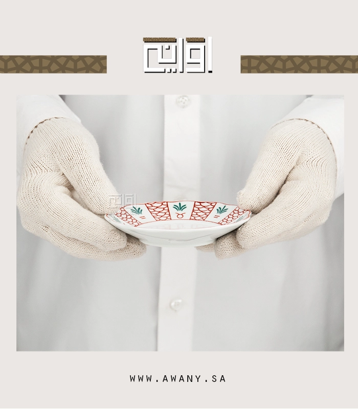 قدمي الشاي واستمتعي بلحظاتك الجميلة، مع صحون البيالات الخزفية، تم تصميمها بطابع تراثي أنيق، بطبعات نقش ورق النخيل بألوان ساحرة.