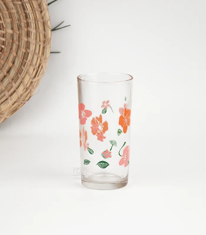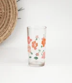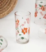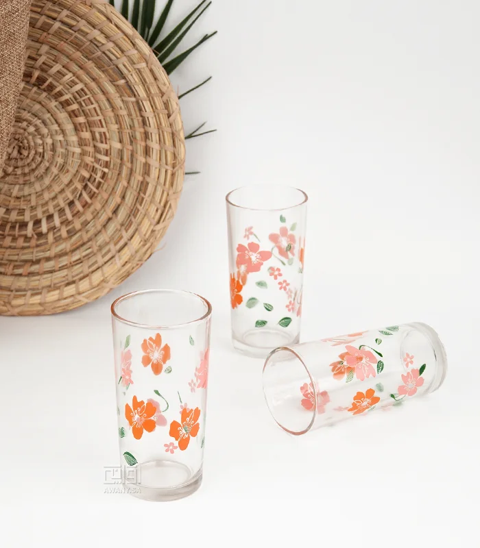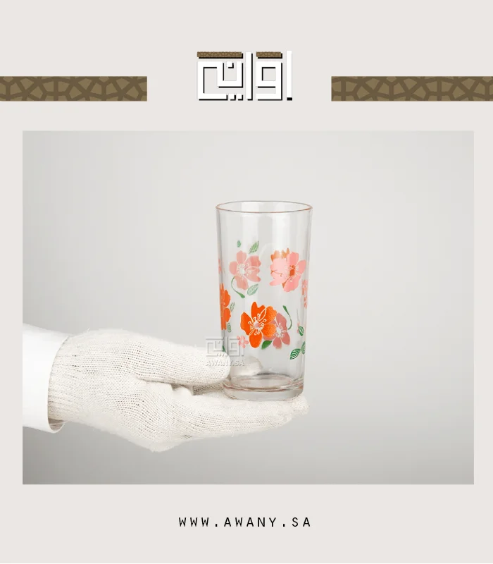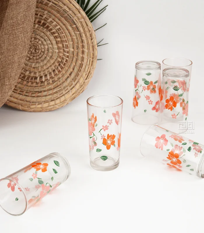 خفة وأناقة ورود برتقالية تخطف الأنظار كاسات زجاجية، صممت بشكل اسطواني شفاف، يتميز بزخارف نباتية مستوحاة من النباتات، رائعة للحفلات والمناسبات.