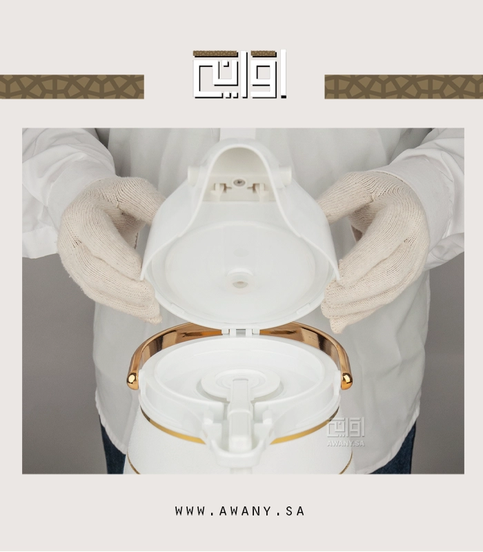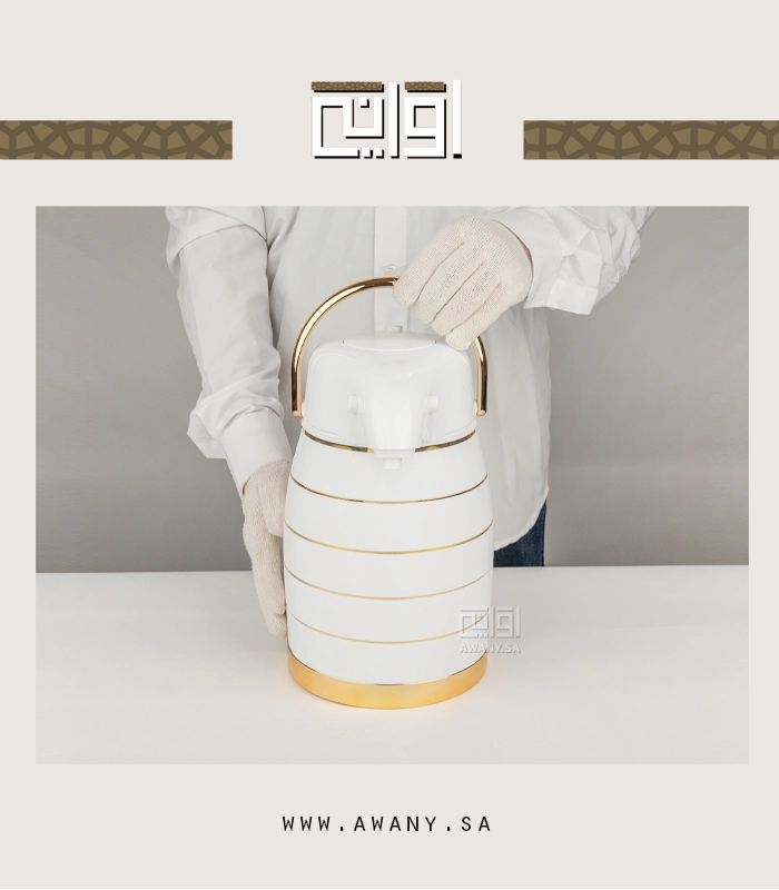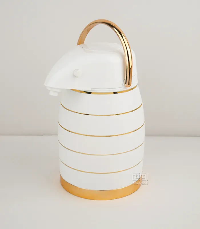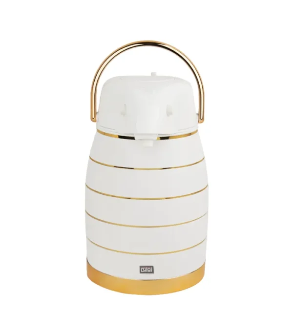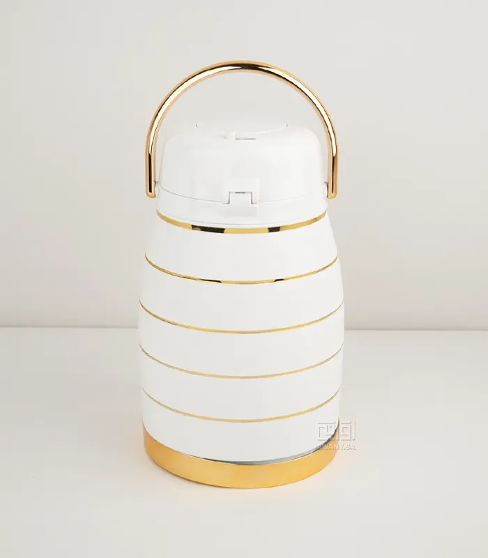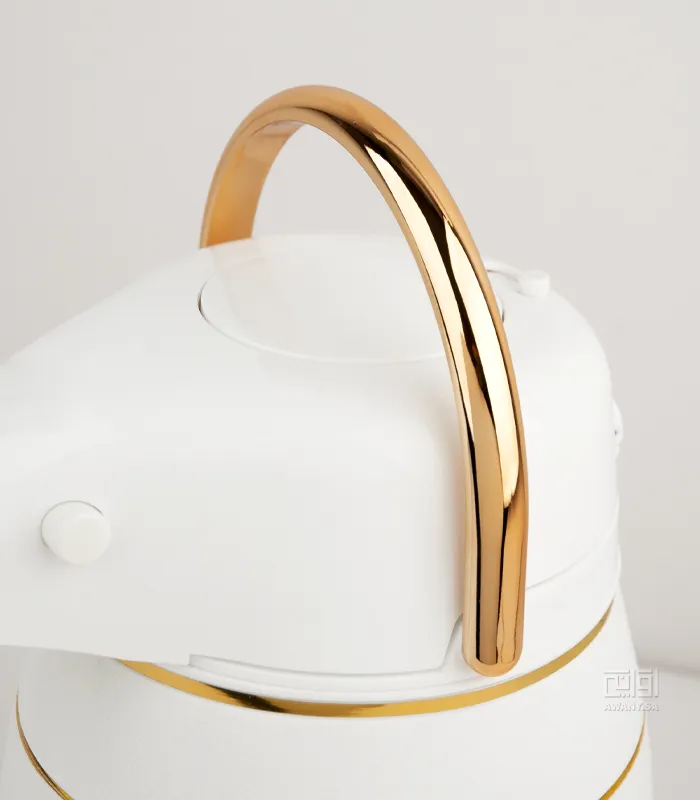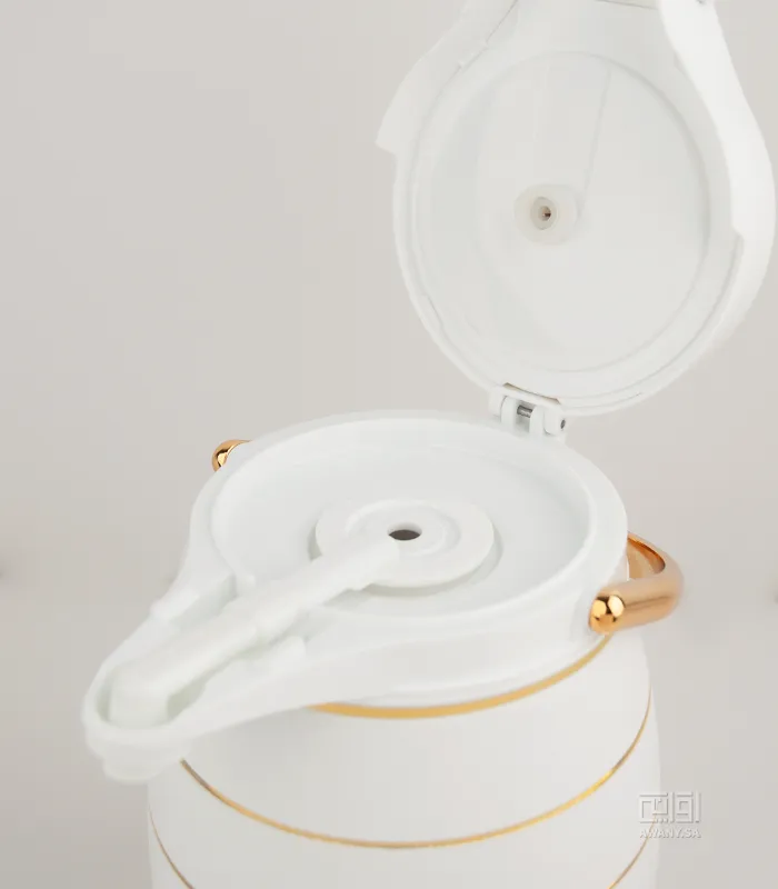 راحة في كل ضغطة ترمس ابيض مع اللمسة الذهبية سعة 2.5 لتر