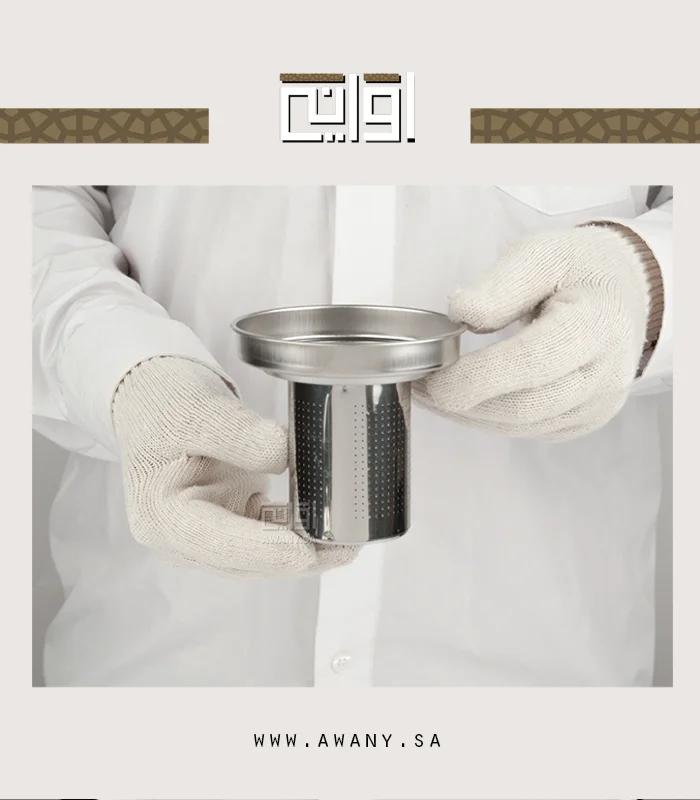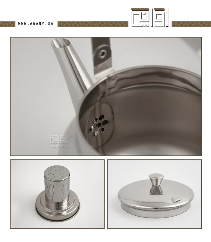 - مصفى داخلي لفصل أوراق الشاي.