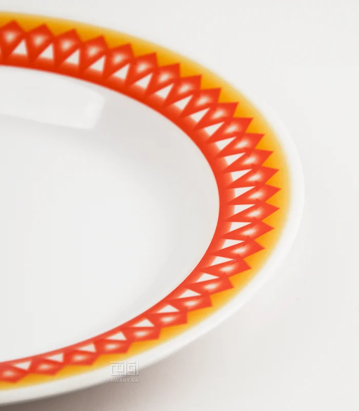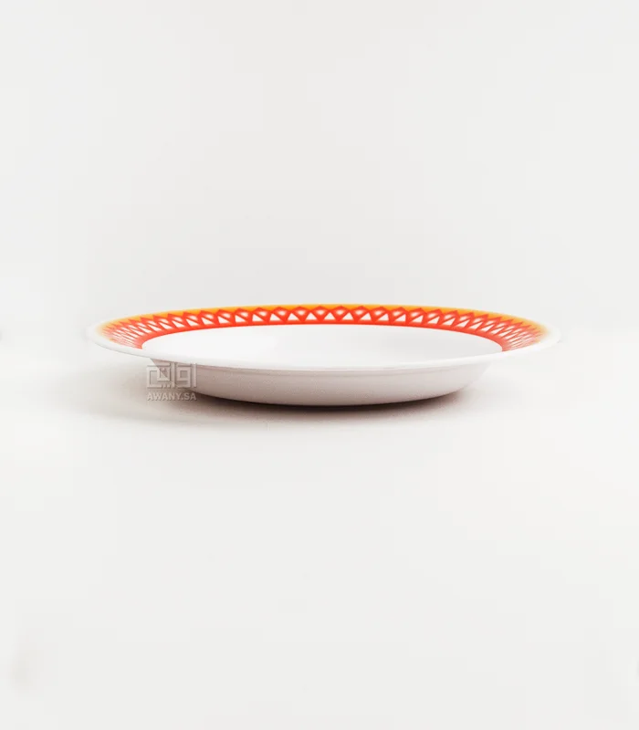 الوان دافئة وزخارف هندسية صحن ميلامين نقشة غضار مقاس 25
