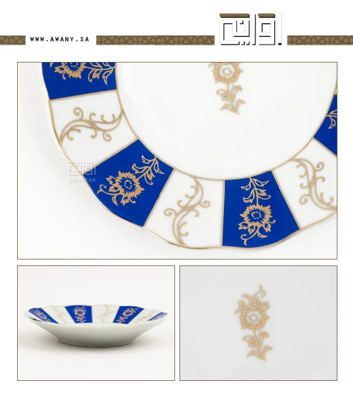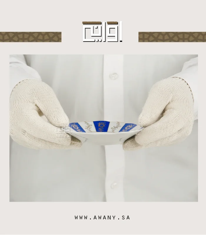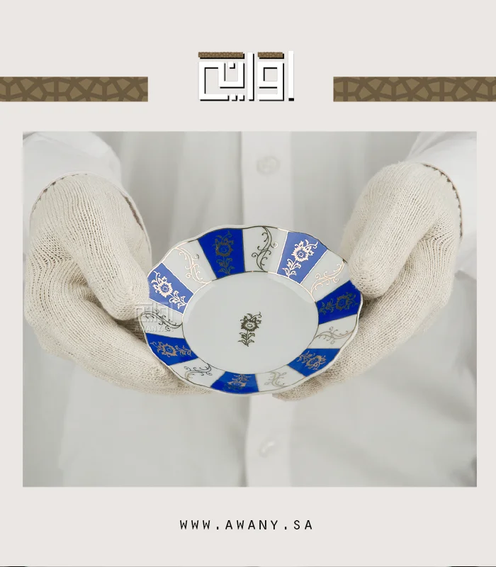 روح الضيافة الشرقية بنقوش من الفن الاسلامي صحون بيالات ازرق