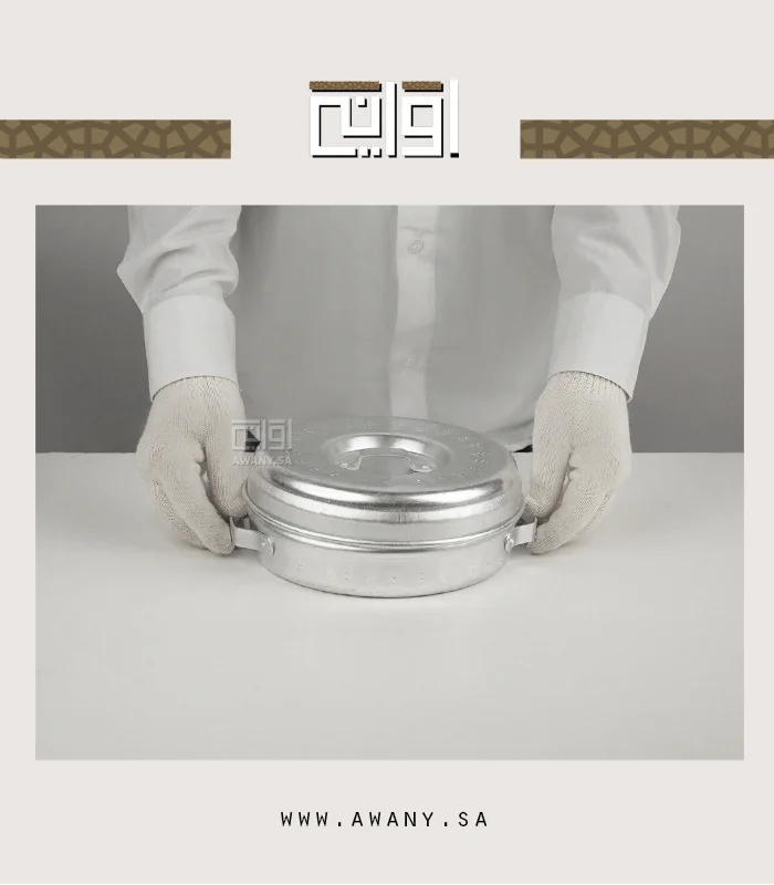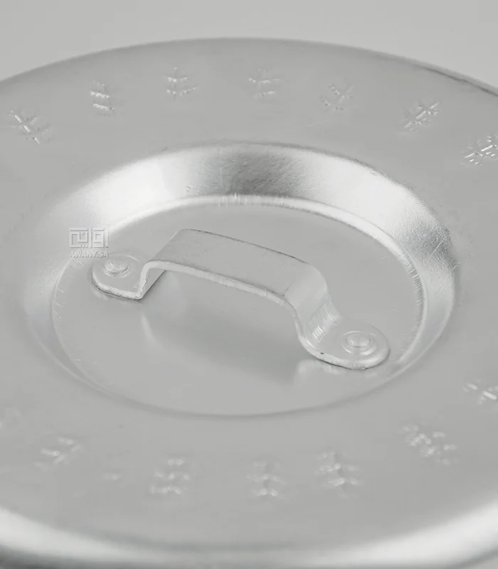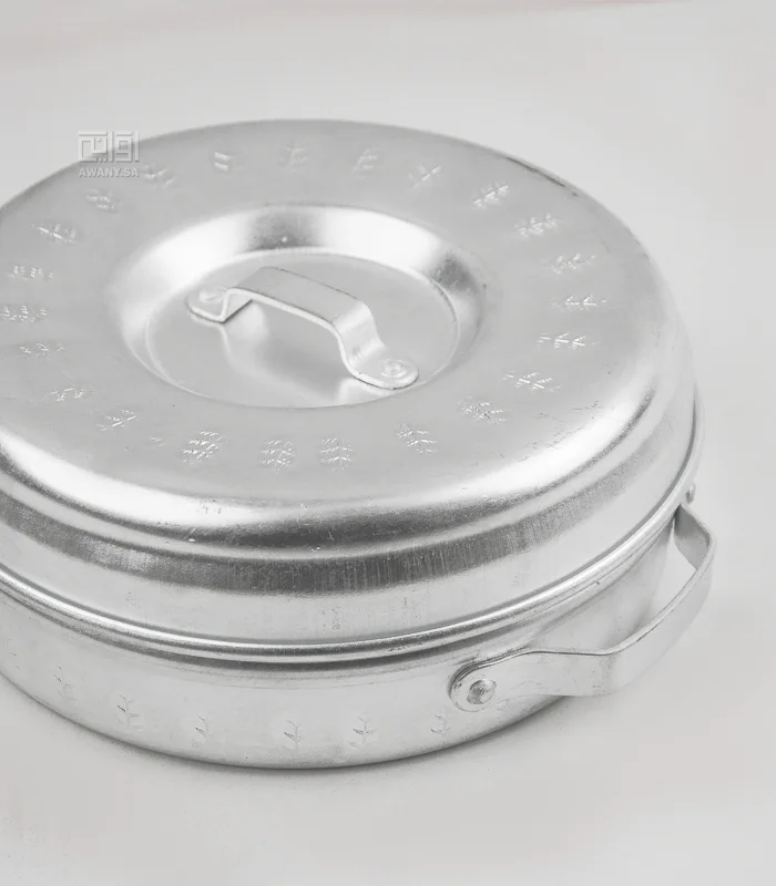 قدر الطبخ الشعبي من الالمنيوم بنقوش محفورة وبارزة، تصميم دائري الشكل، بقطر  20 سم، مزود بمقابض جانبية لسهولة الحمل، يتميز بنقوش وزخارف مميزة على هيكل القدر والغطاء، مثالي للأكلات الشعبية.