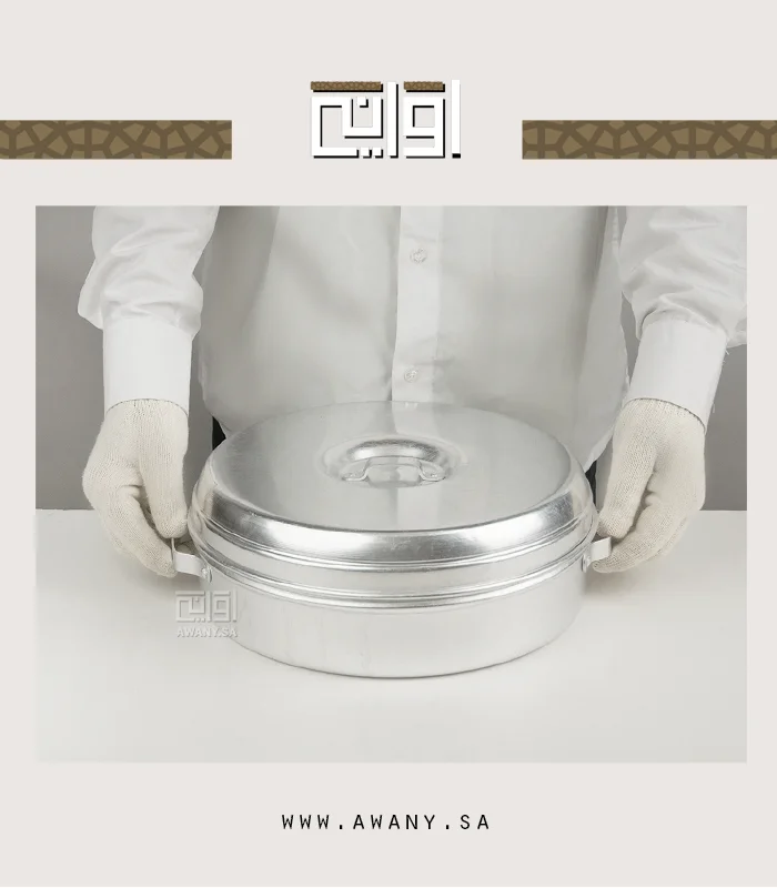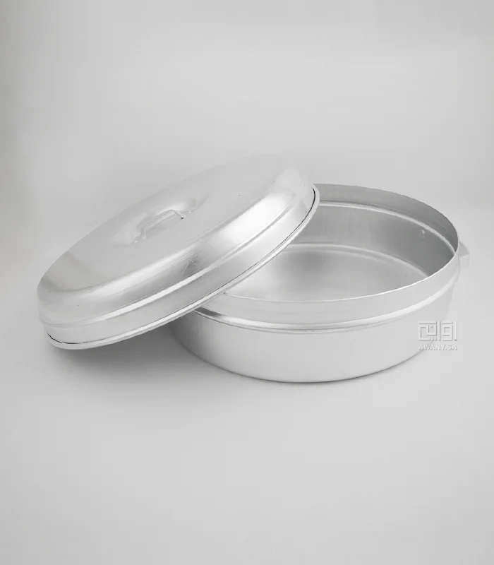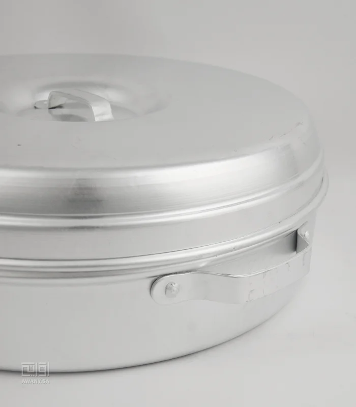 قدر المنيوم سادة غطاء كبس قدر الاكلات الشعبية والمحاشي، خامة من الألمنيوم، تصميم دائري مسطح بغطاء كبس، قطر القدر 28 سم، مزود بمقابض جانبية مريحة، لتحضير المحاشي بأنواعها.