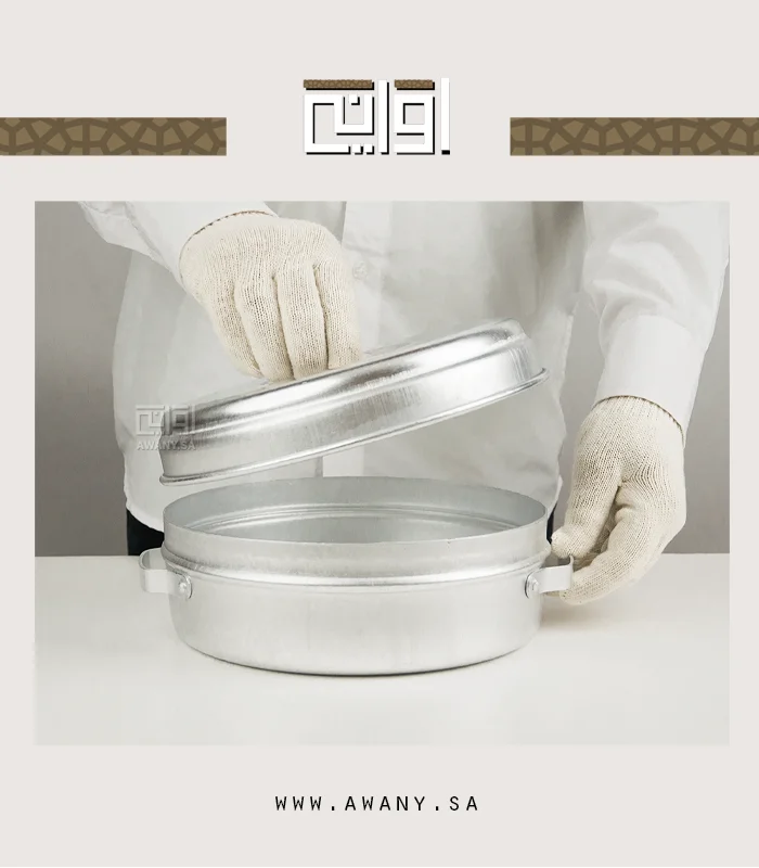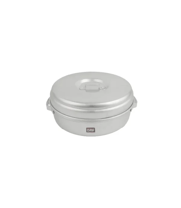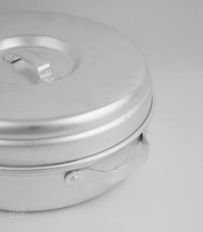 قدر معدن سادة للمأكولات التراثية غطاء كبس، خامة من الألمنيوم، تصميم دائري با ارتفاع مثالي، قطر القدر 23 سم، مزود مقابض جانبية لسهولة الحمل.