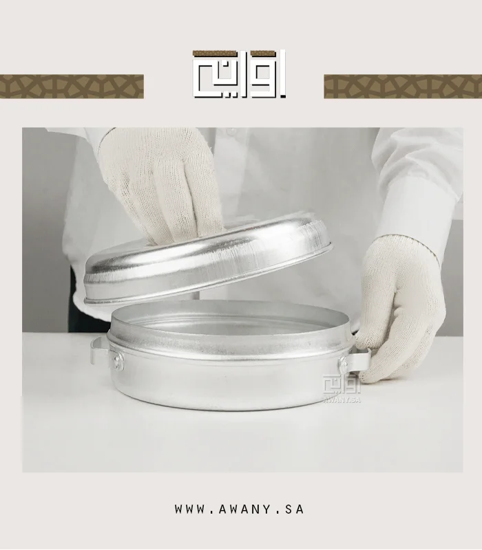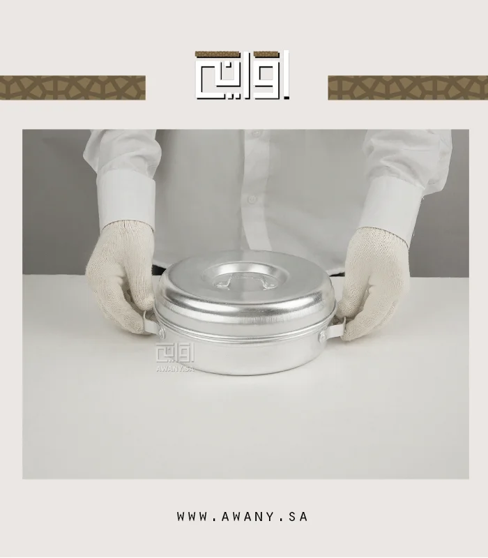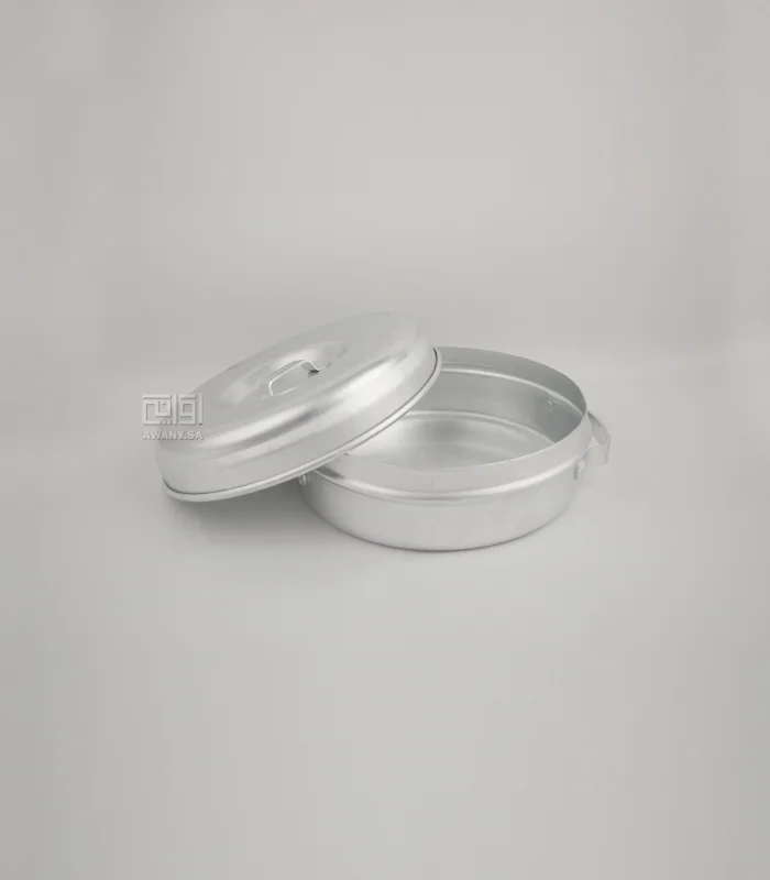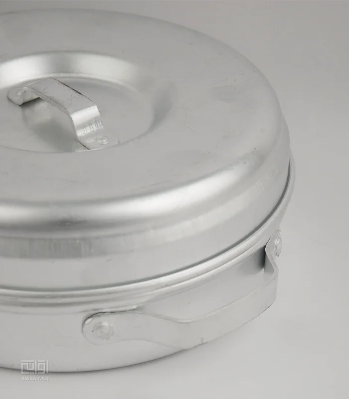 قدر معدن يذكرك بنكهات الماضي ويبهرك بنكهة الحاضر، خامة من الألمنيوم، تصميم دائري مسطح بغطاء كبس، قطر القدر 19,5 سم، مزود بمقابض جانبية مريحة، لتحضير المحاشي و المرقوق.