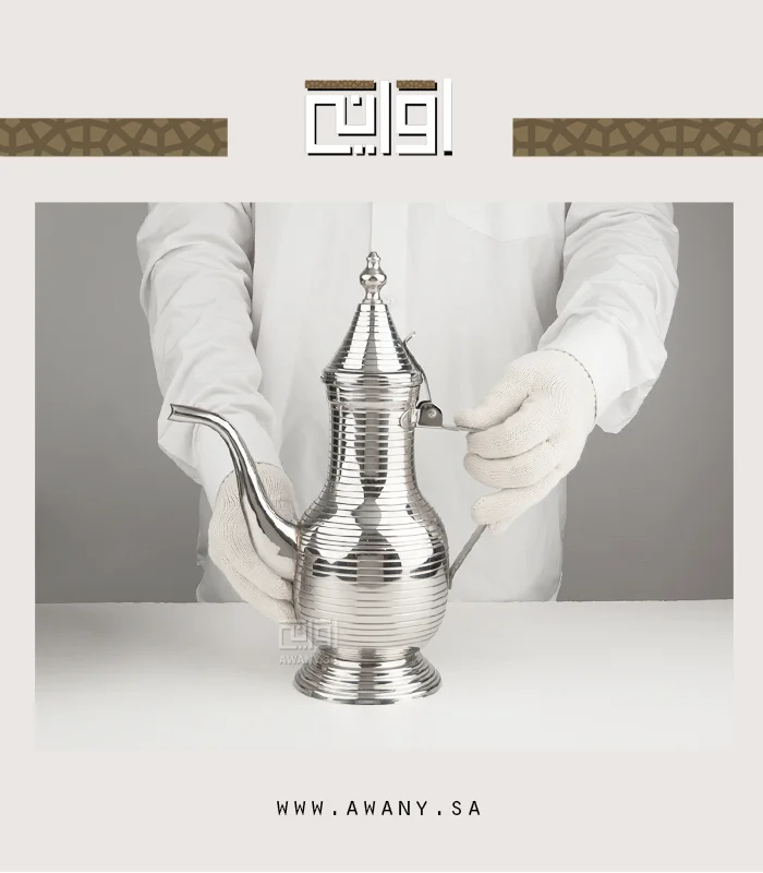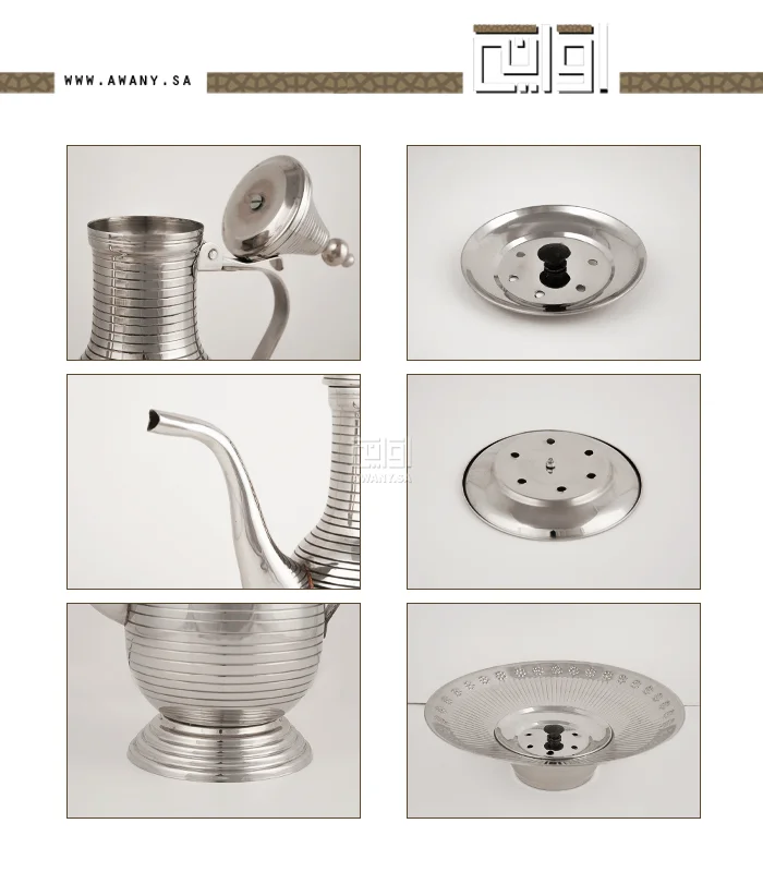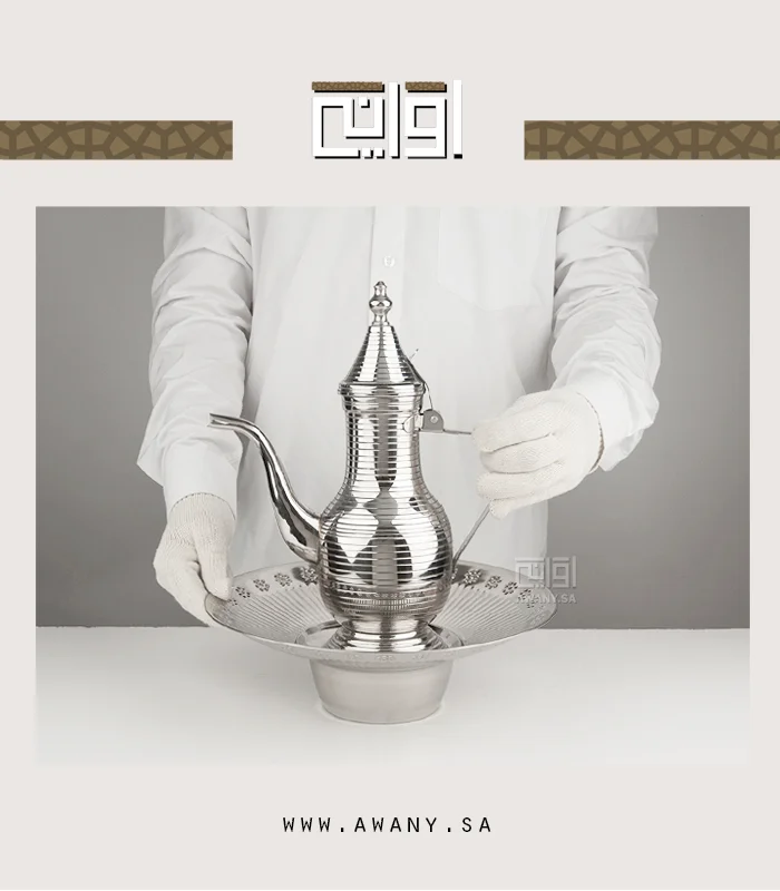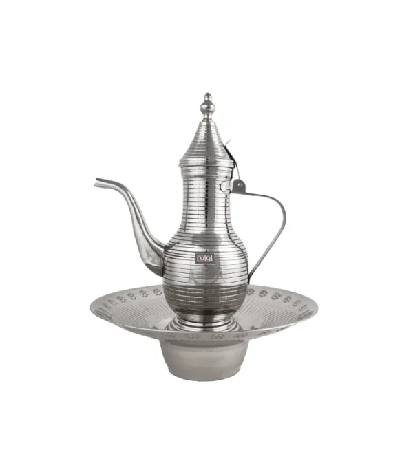 قطعة تزين المجلس وتكرم الضيف، استمتع بلمسة من الأصالة والفخامة، ابريق الغسول مع الطشت التراثي، مصنوع من الستنانلس ستيل اللامع، تصميم كلاسيك يعكس جمال التفاصيل التراثية القديمة، ابريق بغطاء مخروطي الشكل، الطشت دائري عميق بفتحات تصريف للماء، تستخدم لضيافة أو كـ قطعة ديكور.
