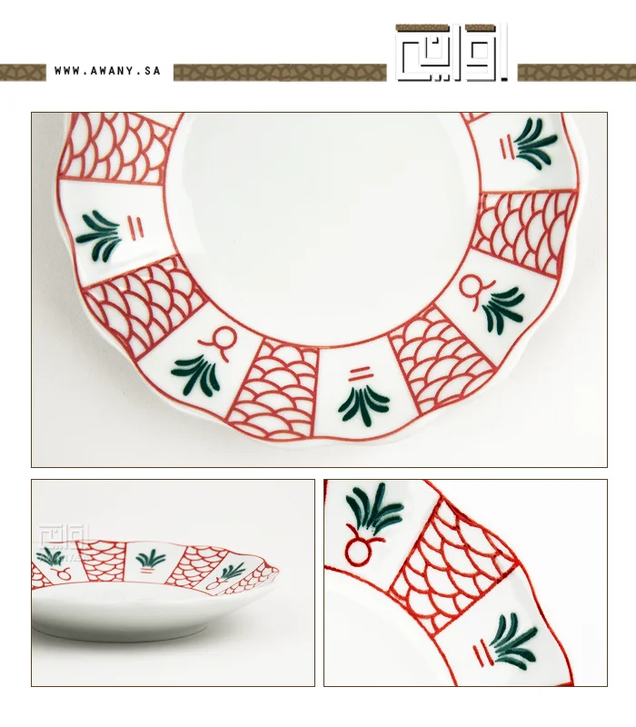 قدمي الشاي واستمتعي بلحظاتك الجميلة، مع صحون البيالات الخزفية، تم تصميمها بطابع تراثي أنيق، بطبعات نقش ورق النخيل بألوان ساحرة.