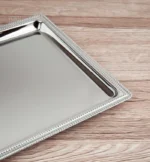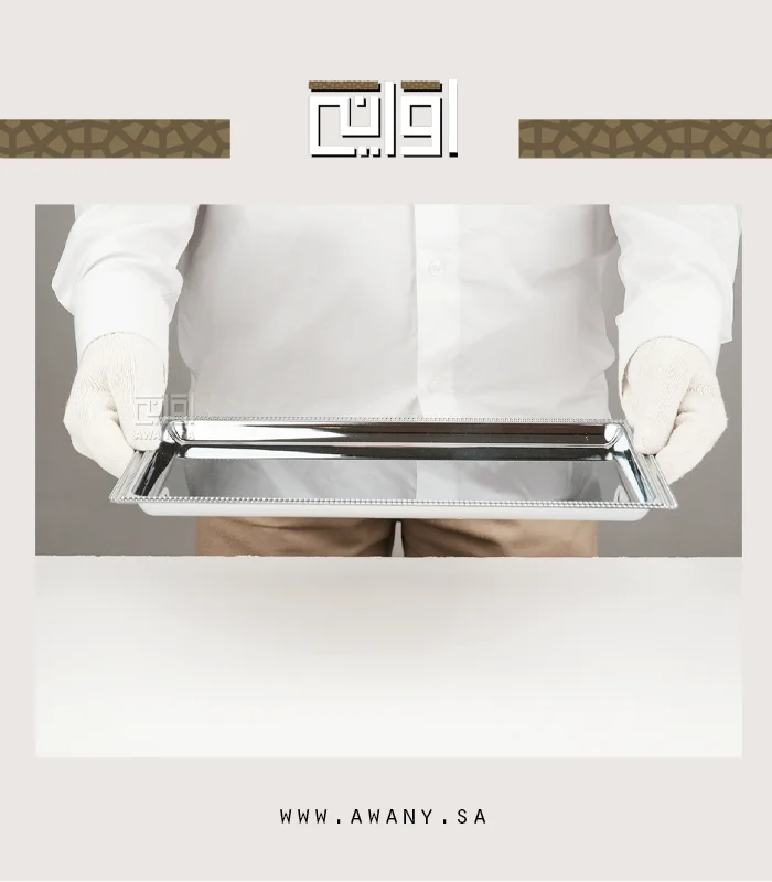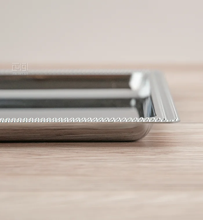 لان الفخامة لا تطلب بل تقدم طوفرية ستيل فضي، لمسة  راقية، مستطيلة الشكل بحواف مزخرفة  لمسة فنية رائعة مثالية لضيافة لا تنسى.
