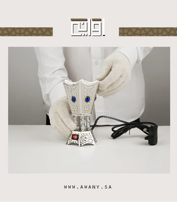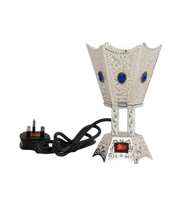 فضي وكرستالات زرقاء تمازج في قلبك مبخرة عود كهربائية ضيافة وتراحيب