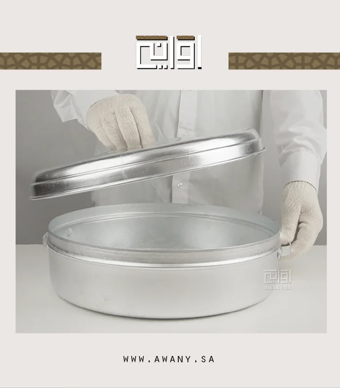 منايدي الجدات الى موائد اليوم قدر ورق عنب معدن، يتميز دائري الشكل بتصميم مسطح، ارتفاع مناسب قطر 36 سم، مثالي لطهي أشهى وألذ المأكولات الشعبية.